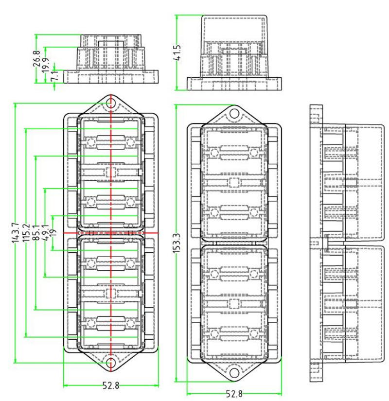 产品特点:采用高透明PC盖,能有效防尘,可以更直观的查看到保险丝的工作情况。1进1出的接线方式方便直观的连接到新的用电器。
